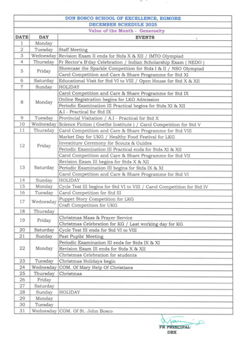 DECEMBER SCHEDULE