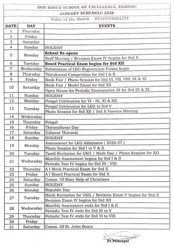 JANUARY SCHEDULE